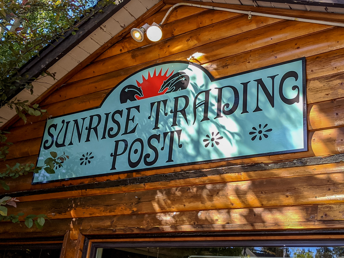 Designed for the Sunrise Trading Post in Big Bear Lake, the typography was inspired by 1880s letterforms and the logo comes from traditional native american imagery symbozing the owner's family. The turquoise of the sign recalls the Native silver jewelry sold there.